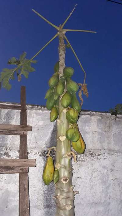 Então, eu estive fora de casa por 20 dias e qdo retornei me deparei com o quadro! Agora, em minha cidade, qdo observamos, a maioria dos pés de mamão todos começam com as folhas se queimando e caindo