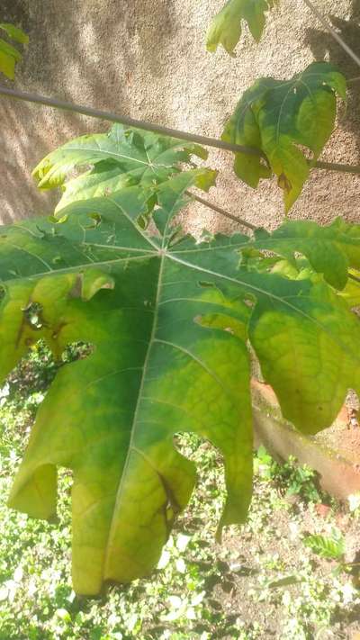 Vejo alguns pés de mamão com as folhas amareladas como a foto. Não consigo identificar o que causa isso. Parece ser necessário cortar-los pois não há o que fazer. Estou certa? Alguém sabe dizer o que esta acontecendo com esses mamoeiros?