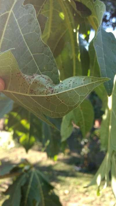 Os sintomas da foto indicam Varíola/ Pinta Preta do Mamoeiro