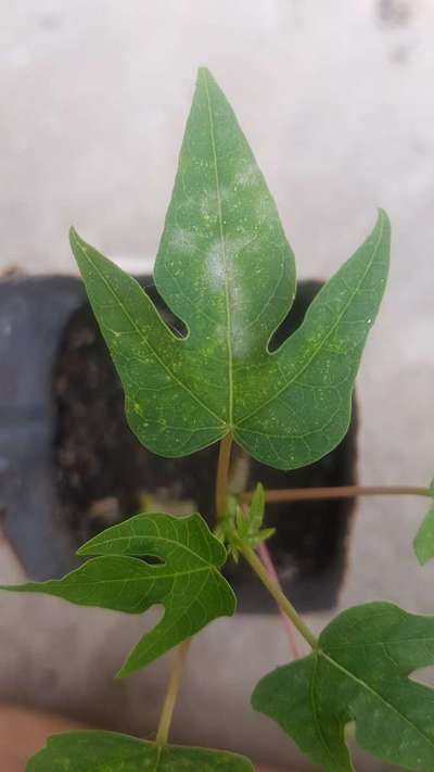 Mamoeiro recem germinado da semente com essas manchas nas folhas.