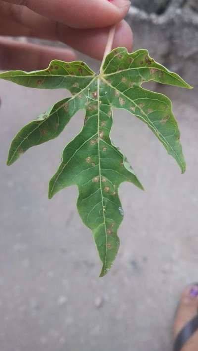 O que seriam esses pontos marrons na folha do mamoeiro?