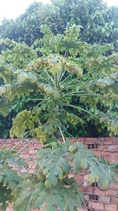 Tenho um mamoeiro que as folhas novas ja estao vindo amareladas oq pode ser ? E os mamoes novos estão caindo mesmo verdes e nem se dedenvolvem oq pode ser?