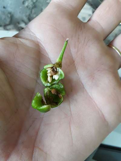 Bom dia, pimenta cai ainda verde, e apresenta essa aparência interna.
