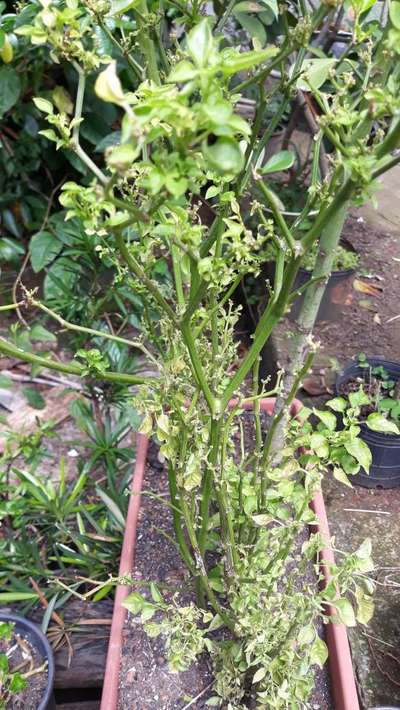 Este pé de pimenta está enfraquecendo e minguando, já olhei não tem pulgao nem cochonilhas, vcs podem me ajudar?