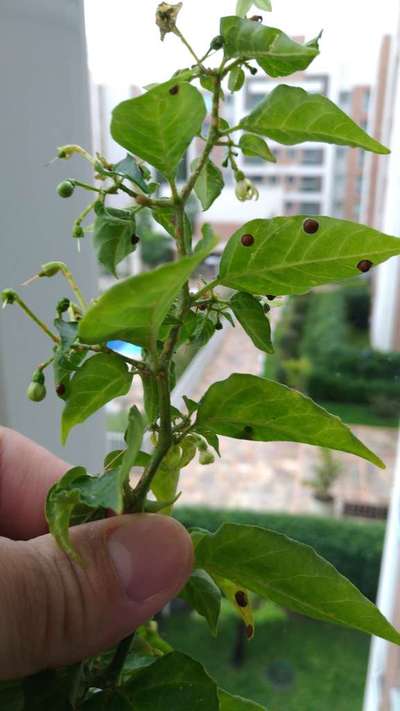 Não consigo identificar o que são essas bolinhas escuras que apareceram nas folhas de Pimenta.