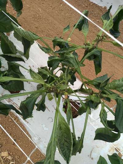 Olha as folhas das pimentas estão ficando tipo queimadas e algumas pimentas estão deste jeito aí.