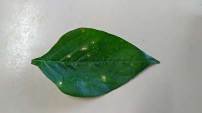 Alteração nas folhas com manchas no pé de pimenta