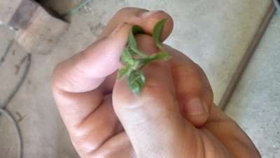 Então pessoal esse é um broto de pimenta biquinho que retirei do pé que está com esse problema, é como se fosse um minúsculo percevejo geralmente na cor esverdeado e outro? pretos com duas "antenas" pequenas na parte traseira eles são muito pequenos. Oque seria? Obs: vi que tem formigas pequenas e pretas no pé de pimenta. Não consegui um foto muito detalhada pois meu celular não conseguiu ficar direito.