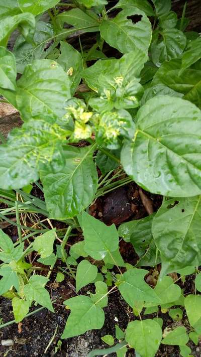 Olá Raimundo Marinho Costa notou a presença de insetos na planta ? Veja a possibilidade de ser sintoma de Cucumber Mosaic Virus of Pepper