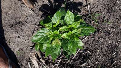Adquiri essa muda de pimenta bode (cheiro) faz poucos dias, e hoje percebi locais queimados e manchas amarelas em uma das folhas.