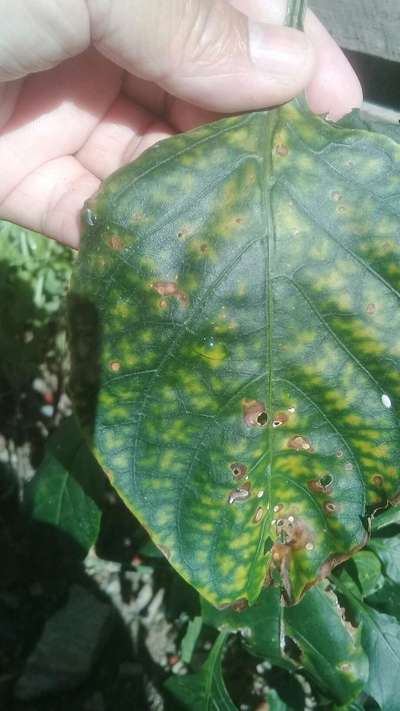 Oi Ana Paula Está parecendo Deficiência de magnésio como citado acima. Também há manchas fungicas.. voce poderia adicionar mais algumas fotos para um melhor diagnóstico?