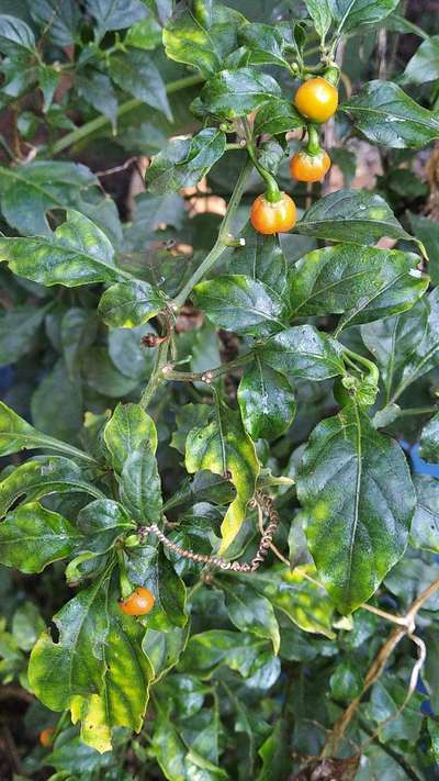 Esse pé de pimenta está com as folhas inrugadas e amareladas o que é bom
