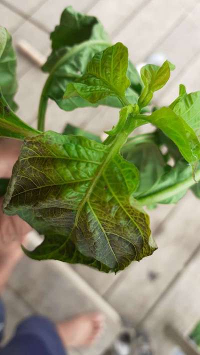 Olá Roberto Lima Looks like Chilli Thrips For confirmation purpose please click on the above green hyperlink to get prevention and control measures. You can go for application of Neem oil 5ml/L. Also there is Phosphorus Deficiency