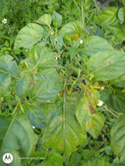 Primeiro apareceu em um pé de pimenta jalokia ai apareceu na dedo de moça agora estão as 5 infectadas com alguma doença que deixa um pó laranja nós galhos e folha como se fosse fungo e mancha mas folhas