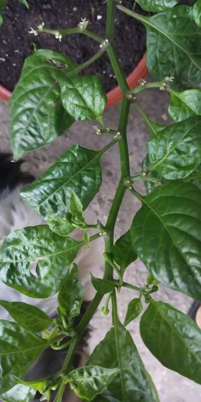 Saiba mais sobre o PlantixSempre planto pimentas e as plantas dão flores, mas elas caem. Deste pé que tirei foto, apenas uma das flores virou frutos, as demais caem e ficam esses pontos brancos.