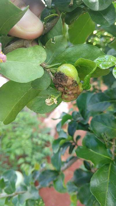 As folhas aparentemente estão saudáveis, assim como as raízes, porém o fruto está totalmente danificado.