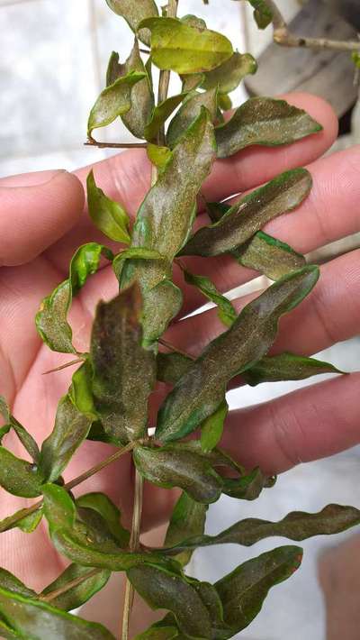 Meu pe romã esta com as folhas irrugada e amarela o caule dela e fino