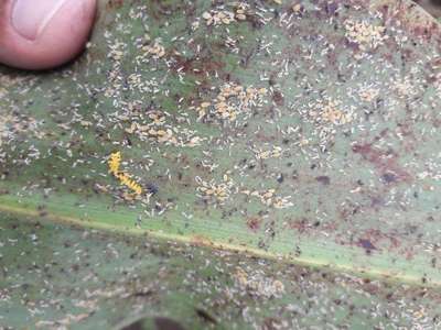 Ataque de Anfídeos na face inferior da folha do Sorgo.