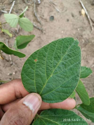 Olá! Os sintomas característicos da mancha Alvo da soja são manchas foliares circulares que podem atingir até 2 cm de diâmetro, ocorrem principalmente nas folhas baixeiras e têm o centro escuro e anéis concêntricos, como se tivesse um anel dentro do outro. Porém, no início da lesão as manchas podem ser irregulares. Veja a descrição e as fotos na biblioteca plantix e nos diga se você observa os demais sintomas: Mancha Alvo