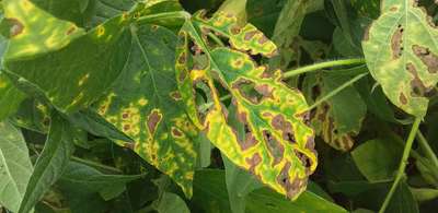 Folha necrosadas e mancha preta nas vagens
