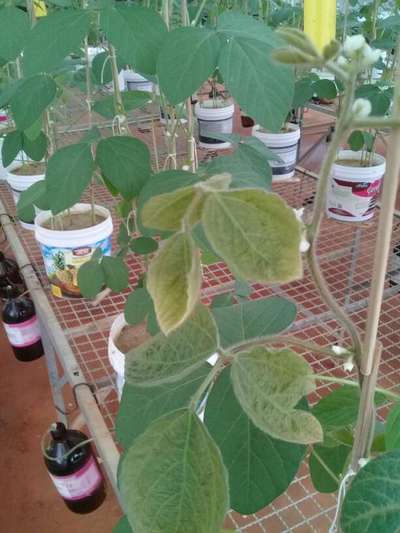 Aparenta Deficiência de magnésio e <strong class="username">Antracnose da soja ph ou adubação de base estão desequilibrados .