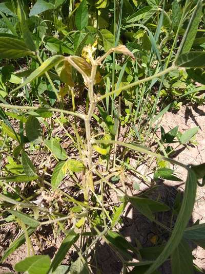 Tá secando pé de soja grande parece que passa pra outros pé. O pé entorta copa e more aí vai saindo broto e more também.ele da as mancha mais nas veradas de matos.