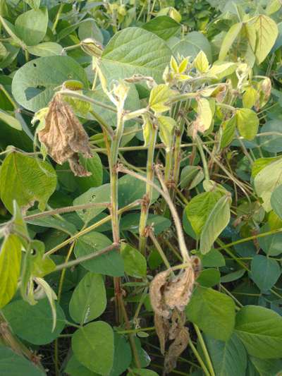 Victor Gabriel Silva De Jesus Se isso estiver acontecendo em pequenas reboleiras e principalmente nas bordaduras, pode ser macrofomina. Ela ocorre preferencialmente em solos compactados e em periodos de veranicos.
