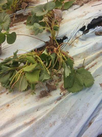 Pés de morango murchando e morrendo.