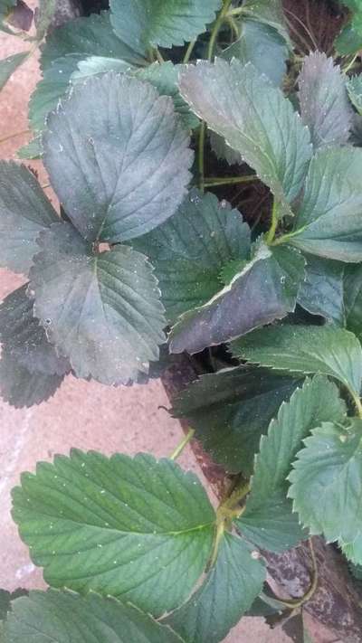 Olha ganhei este morangos mas num sei oke tasco tecendo as folhas estão ficando meia escura e tem estes num sei se é vizinho branco e tem folha que debaixo tem uns amarelinho ou laranja num sei