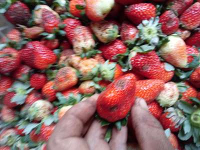 Da manchas escuras e podre nos morangos