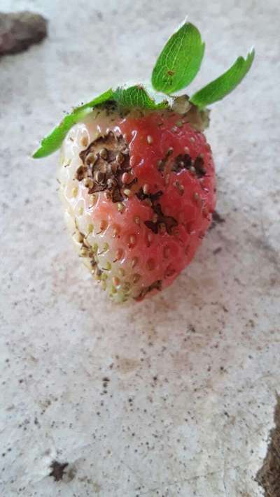 Tem bastante frutos assim na minha plantação de morango, o que pode ser ?