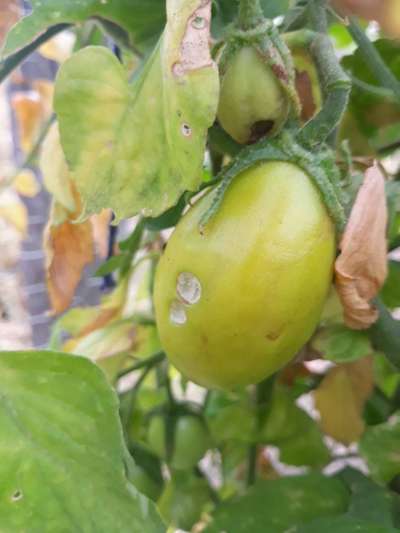 Tomate cm folhas amarelada e enrugando e apodrecendo