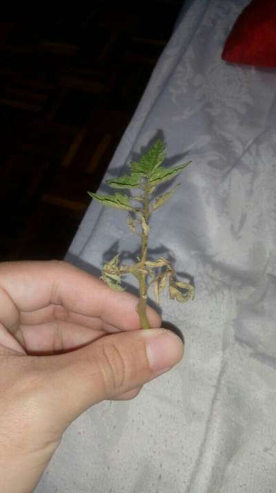 Saiba mais sobre o PlantixOs galhos do tomateiro estão ficando amarelados e as folhas secando.