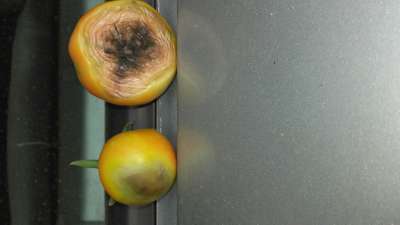 Olá Raimundo! Aparentemente se trata de uma doença chamada Podridão apical / Fundo Preto . Clique neste link em azul e veja algumas medidas de controle.