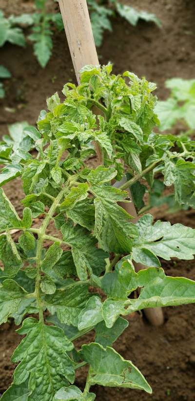 Mas só um pé os insetos atacarem não pode ser isto tá mais pra uma virose tome cuidado pq se for o trips ele é o vetor que propaga essa doença então Fassa um tratamento pra controlar o vetor e a aplicação de cobre ajuda e bastante como uma ação antibacteriana.