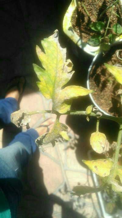 Tomate cm folhas amarelada e enrugando e apodrecendo