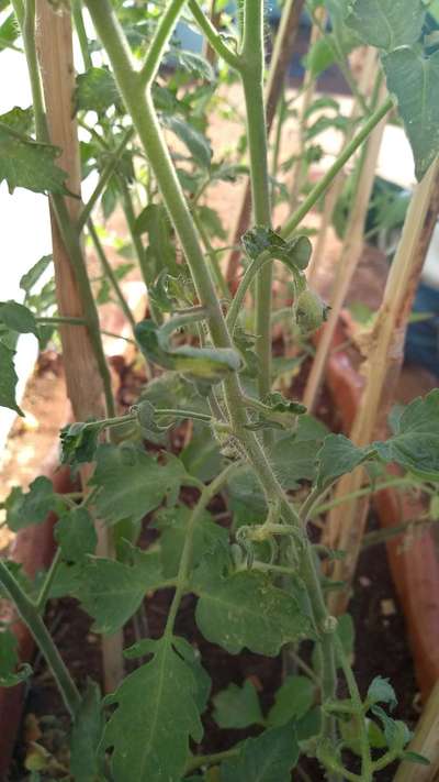 Folhas de tomate enroladas. O que pode ser. Aqui na região a temperatura está baixa.