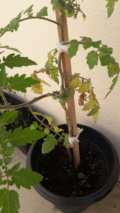 Olá, venho notando que apenas a parte de baixo do tomateiro as folhas tao ficando amareladas. Os ramos de cima estao todos saudaveis e verdinhos. Coloquei fertilizante achando que era falta de nitrogenio mas nao ajudou. Como proceder?