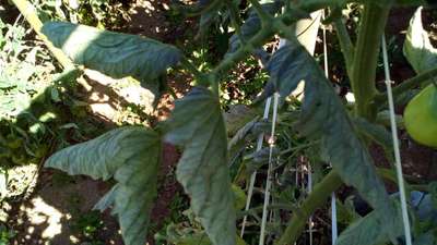 Tem que verificar se tem tripes na área, pois tem sintomas de virus do vira cabeça do tomate.