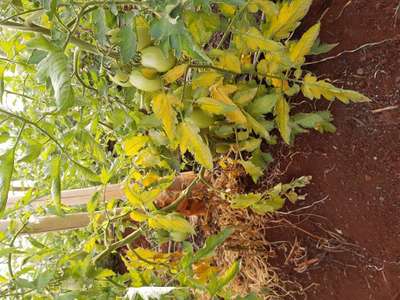 Tomateiro com as folhas do baixeiro amarelas e com necrose