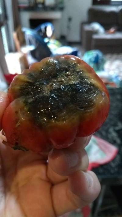 Algums furtos estão apodrecendo antes mesmo de amadurecer , de 10 pé de tomate 4 estão dando frutos assim ! Oque pode ser??