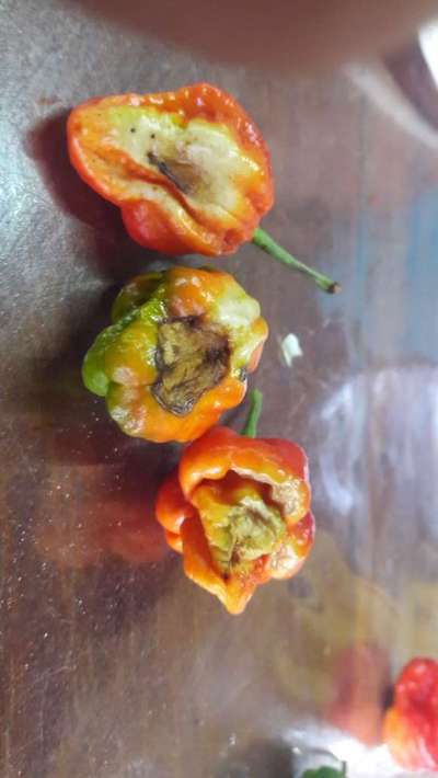 o que pode ser isto nos neus frutos de pimenta? pensei em excesso de sol?