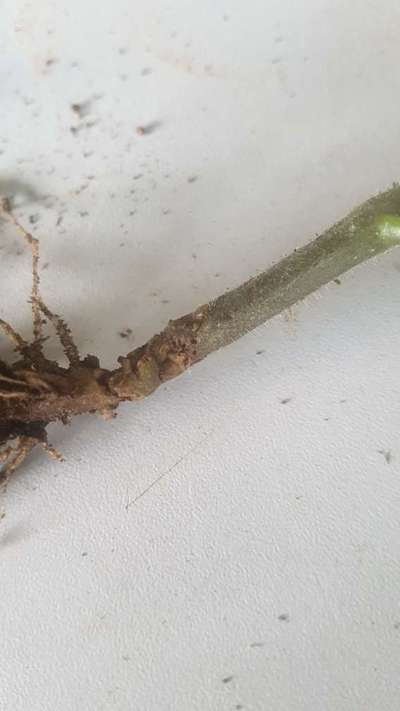 Apos o transplante das mudas de tomate algumas começaram a ter esse problema. Não sei dizer se é um inseto ou da própria planta, mas começa ficar tipo (roida) no talo da planta.