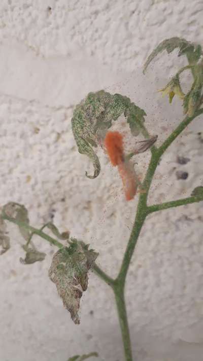 Tenho pé de tomate cereja foi tomado por pequenas arainhas ,de cor alaranjdas....as folhas estão piguimentadas com pontinhos brancos e muito rececadas ,