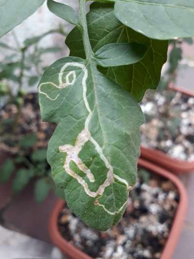 As folhas do meu pé de tomate estáo com algumas marcas parece rastro de algum inseto eu tiro as folhas mas no dia seguinte aparece em outras folhas como posso resouver isso Obrigado
