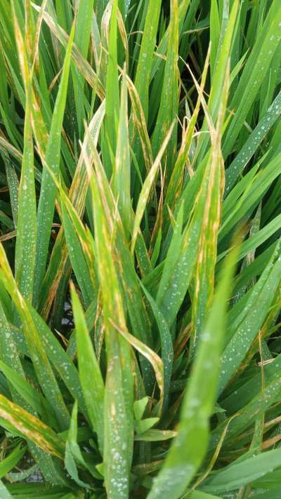 Arumugam நண்பர் கூறுவது சரிதான். இது பாக்டீரியா இலை கருகல் நோய் தாக்குதல் ஆகும். Bacterial Blight of Rice இந்த லிங்கையை பார்த்து முழு விவரமூம் தெரிந்துகொள்ளவும். Plantix சமூகத்தை பயன்படுத்திய மைக்கு நன்றி. தொடர்ந்து பயன்படுத்துங்கள் தோழரே Magnesium Deficiency மற்றும் ஆரம்ப கால இலைக்கருகல் நோய் அறிகுறி உள்ளது. சூடோமோனாஸ் 250 ml முறை தெளிக்க விடுங்கள் அதிகமாக இருந்தால் streptomycin sulphate 18 g + hexaconazole 250 ml இவற்றைக் கலந்து தெளித்தால் இது சரியாகிவிடும் Arumugam