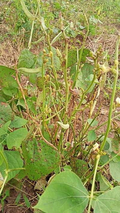 చిక్కుడు ఆకులు ఎరుపు గా అవుతున్నాయి , చేను చివర దశలో ఉన్నట్లు ... వాడిపోతుంది పూత తక్కువ వస్తుంది