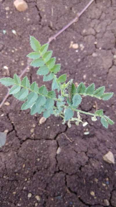 14 రోజుల శనగ పంట లో పొటో లో ఉన్న పురుగు ఆశించి ఆకులను తిని పంటను నష్టపరుస్తోంది సరైన మందులను సూచించగలరు