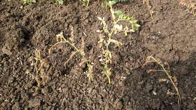 పచ్చని మొక్క వడలి,ఎండి తెల్లగా వస్తున్నాయి.