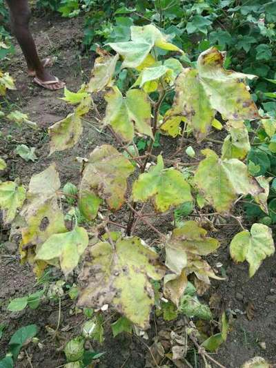 Angular leaf spot of cotton. angular leaf spot of cotton (Xanthomonas axonopodis pv. malvacearum) Bacterial blight can affect the host plant throughout its life cycle and symptoms vary, to some extent, with plant age and organ affected. For details please go through Angular Leaf Spot in Plantix library. Thanks for visiting Plantix community
